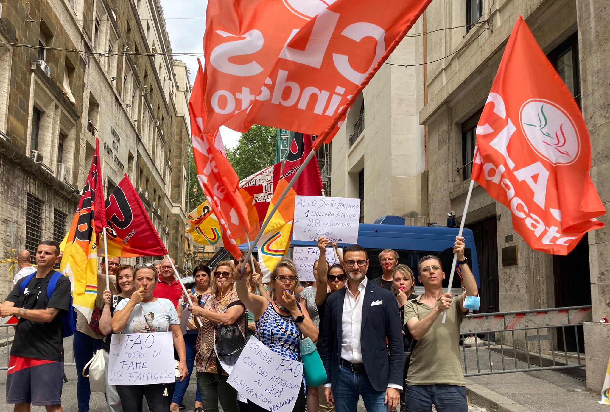 Si è svolta questa mattina sotto al Ministero del Lavoro di Roma, la manifestazione unitaria Sindacato CLAS e Cub, dei lavoratori addetti alla ristorazione presso la FAO.