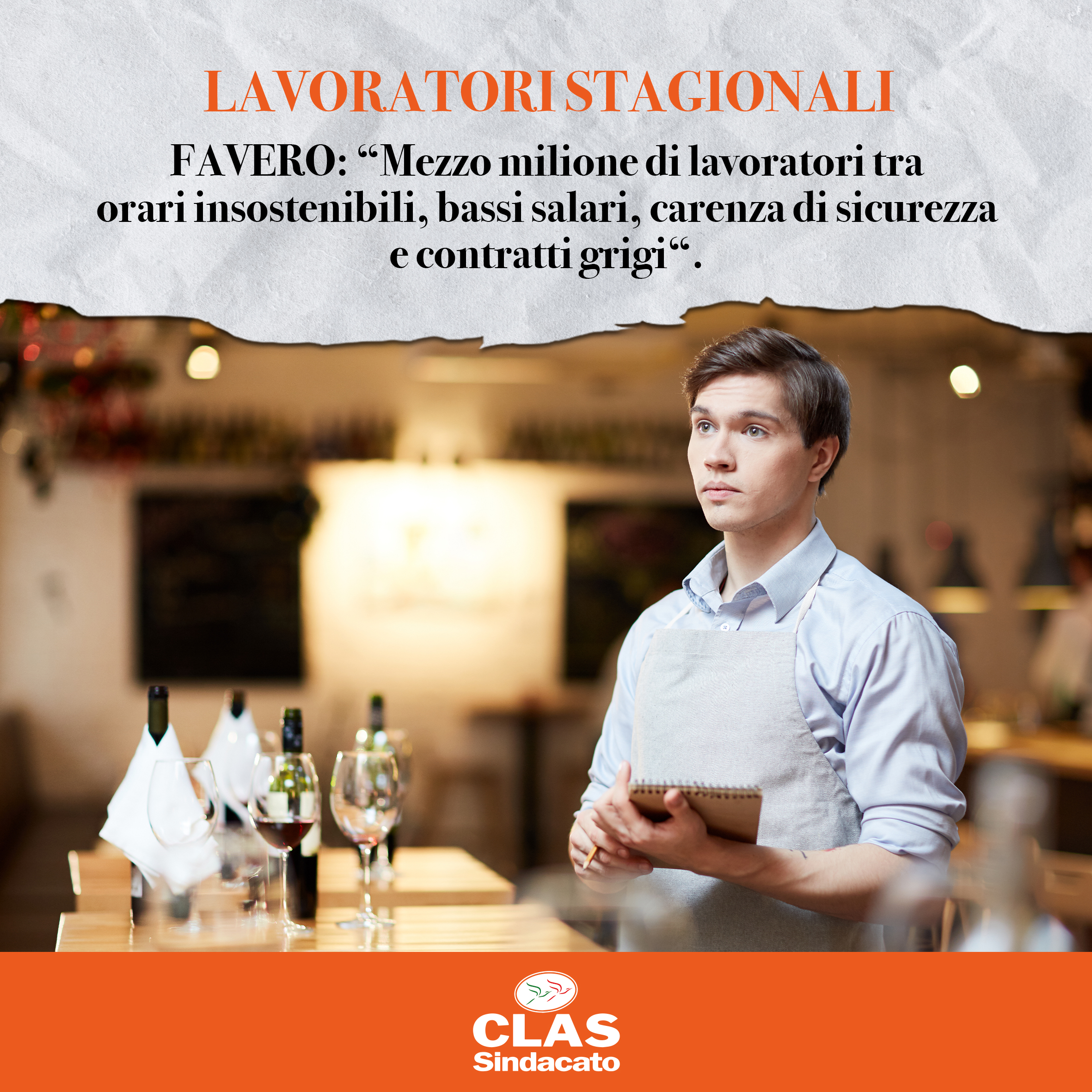 E’ quanto dichiara il Segretario Generale del Sindacato CLAS Davide Favero, che fa il punto sul fenomeno del precariato dei lavoratori stagionali in Italia.