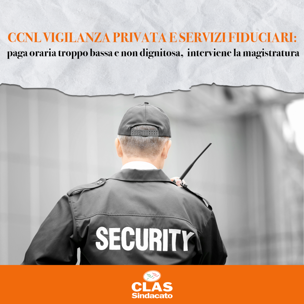 CCNL Vigilanza privata e servizi fiduciari: paga oraria troppo bassa e non dignitosa, interviene la magistratura E’con sentenza del 21 luglio 2023, che il Tribunale di Catania ha ritenuto non conforme alla Costituzione l’importo di 4,60 euro l’ora, paga oraria del CCNL Vigilanza privata e servizi fiduciari, siglato dalle organizzazioni sindacali “comparativamente più rappresentative”. La retribuzione oraria prevista per le mansioni di usciere non è infatti conforme all’articolo 36 della Costituzione. Il lavoratore che ha promosso la vertenza, ha sostenuto e ottenuto il confronto con la retribuzione oraria, molto più alta, prevista da Ccnl similari per mansioni. Una sentenza, quella del Giudice di Catania, che sancisce il diritto del lavoratore «a una retribuzione proporzionata alla quantità e qualità del suo lavoro e in ogni caso sufficiente ad assicurare a sé e alla famiglia un’esistenza libera e dignitosa». Dichiara il Segretario Generale del Sindacato CLAS Davide Favero: “ Le categorie di lavoratori per i quali la retribuzione oggi non possa essere considerata sufficiente per un’esistenza dignitosa, è assai lunga. L’esempio riportato è solo uno dei casi nei quali la magistratura deve o dovrà intervenire a colmare ingiustizie determinate anche dall’applicazione di contratti collettivi, firmati dalle organizzazioni sindacali considerate “maggiormente rappresentative”. Una legge sul salario minimo è necessaria per garantire, a lavoratori e lavoratrici con contratti economicamente disagiati, una retribuzione conforme alla qualità del lavoro svolto e adeguata a sostenere l’attuale costo della vita. Non possiamo accettare lavoratori poveri per contratto, non si possono rinnovare contratti “rappresentativi” o minori, senza considerare le ripercussioni sulle retribuzioni dei lavoratori, oggi costretti a sostenere un fortissimo aumento dei prezzi sui beni e servizi di prima necessità”.